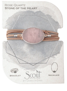 Suede Stone Wrap - Rose Quartz / Silver /Stone of the Heart - Bracelet/Necklace