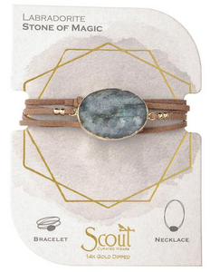 Suede Stone Wrap - Labradorite / Gold / Stone of Magic - Bracelet/Necklace